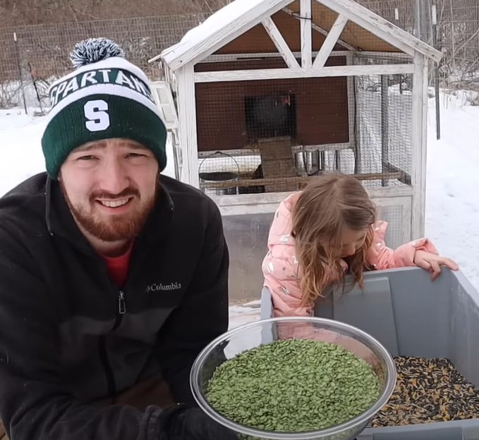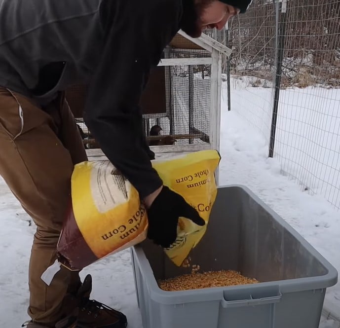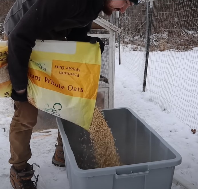 The Youtube Channel Acres Of Adventure Homestead shows us how to make nutritious chicken feed for pennies on the dollar.